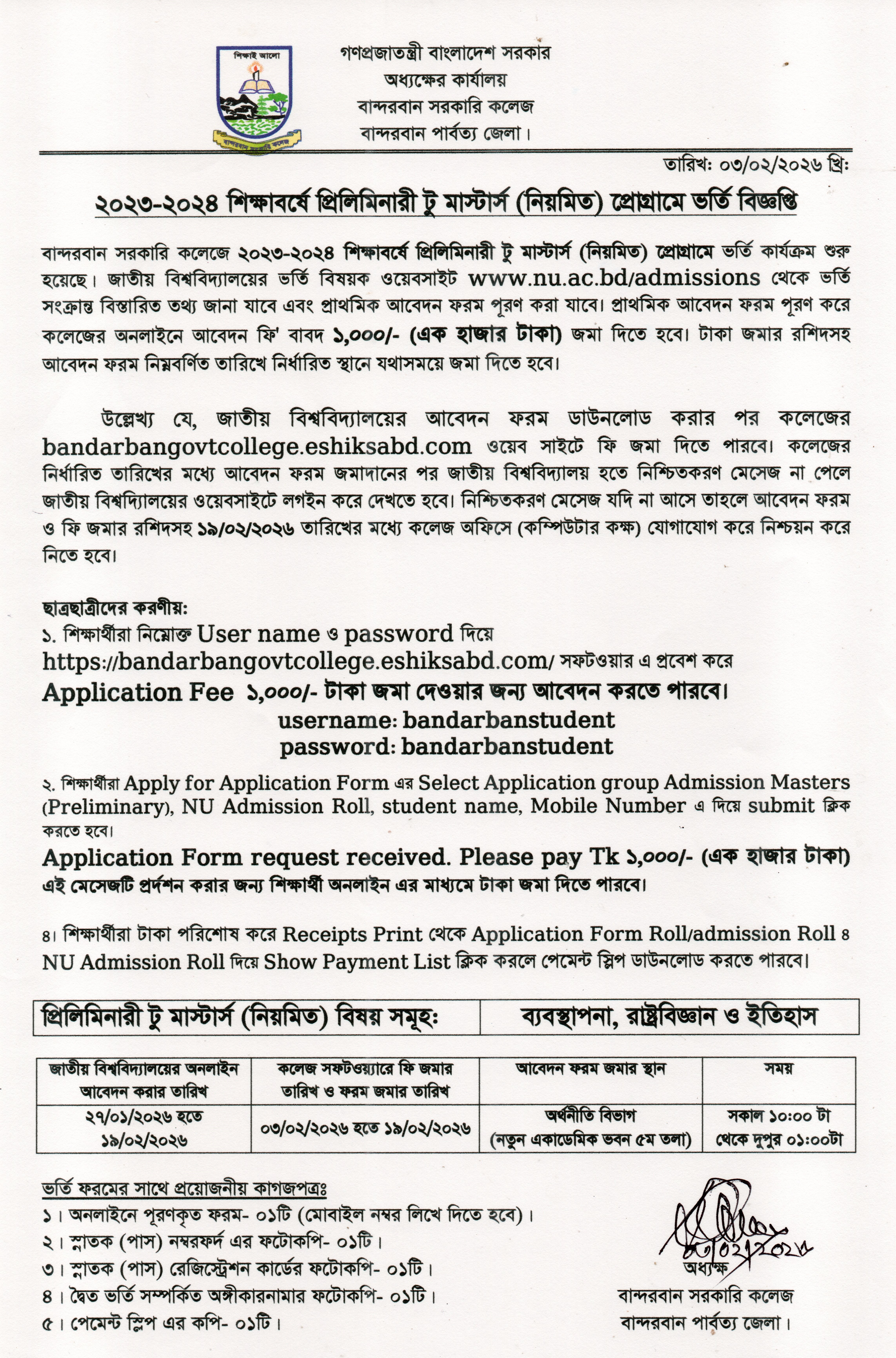 ২০২৩-২৪ শিক্ষাবর্ষের প্রিলিমিনারী টু মাস্টার্স ভর্তির আবেদন বিজ্ঞপ্তি