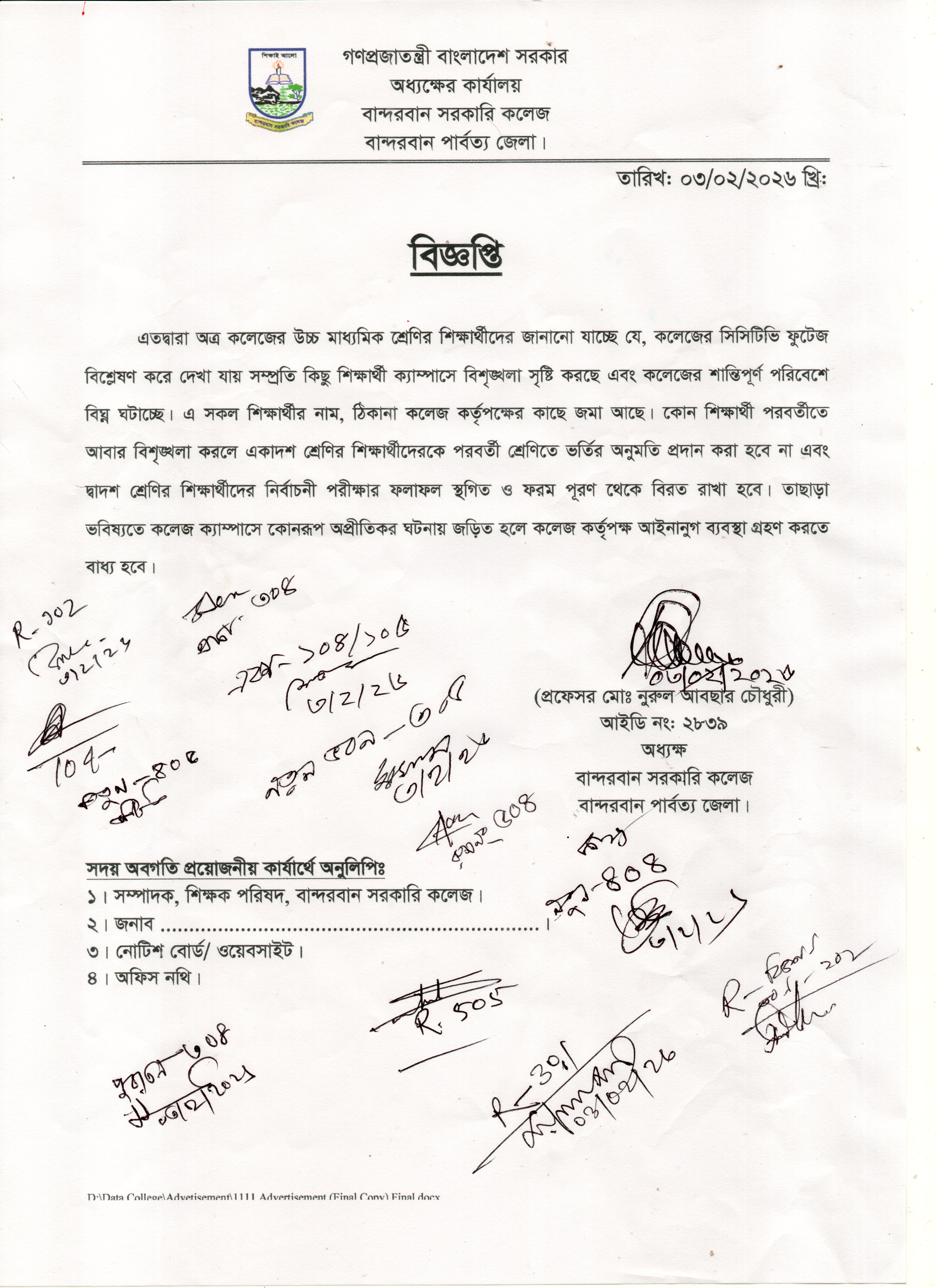 বার্ষিক অন্ত:ক্রীড়া, বহি:ক্রীড়া এবং সাহিত্য ও সাংস্কৃতিক প্রতিযোগিতা ২০২৬ এর বিজ্ঞপ্তি
