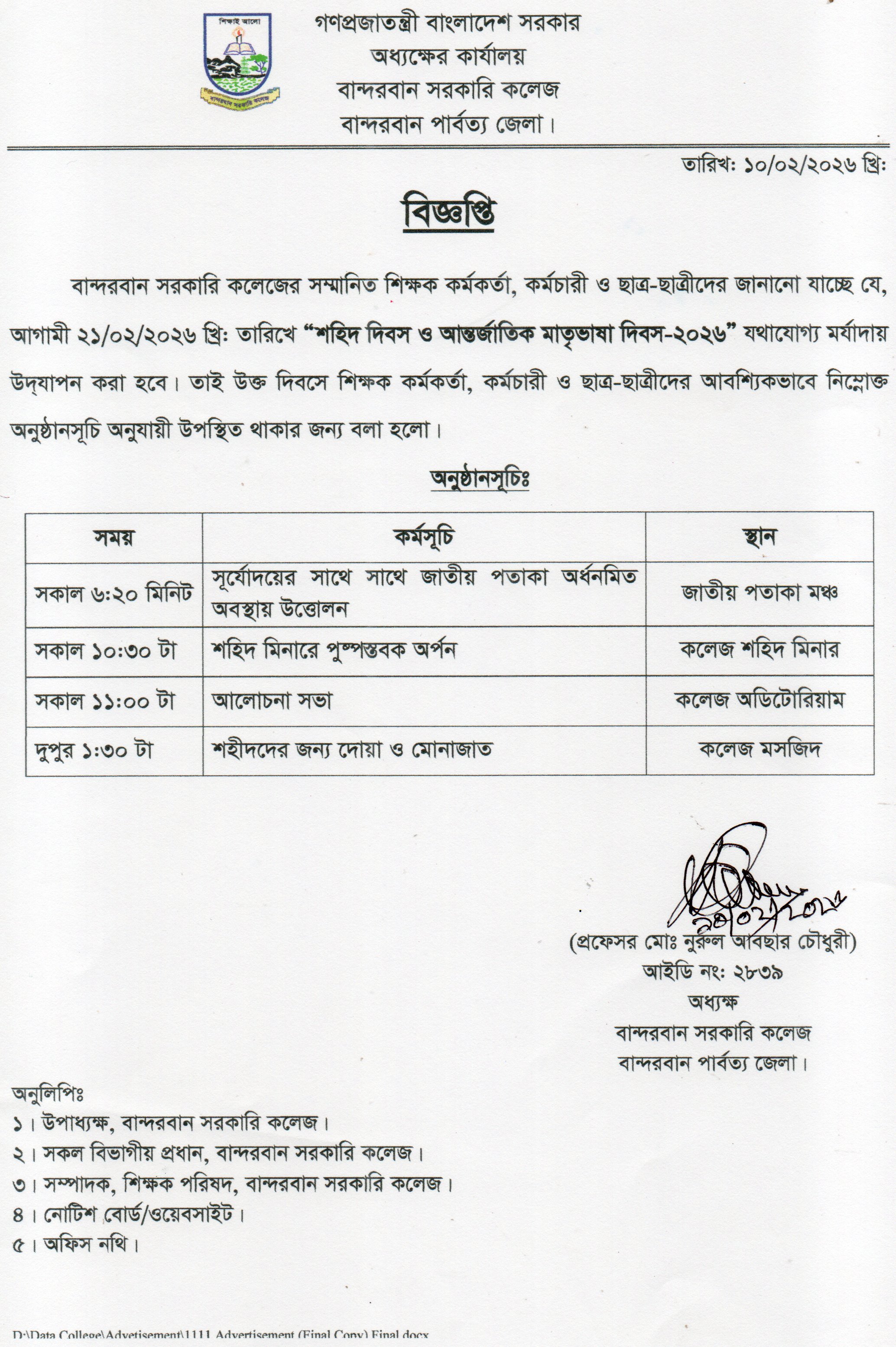 ২১শে ফেব্রুয়ারি শহিদ দিবস ও আন্তর্জাতিক মাতৃভাষা দিবস ২০২৬ এর বিজ্ঞপ্তি