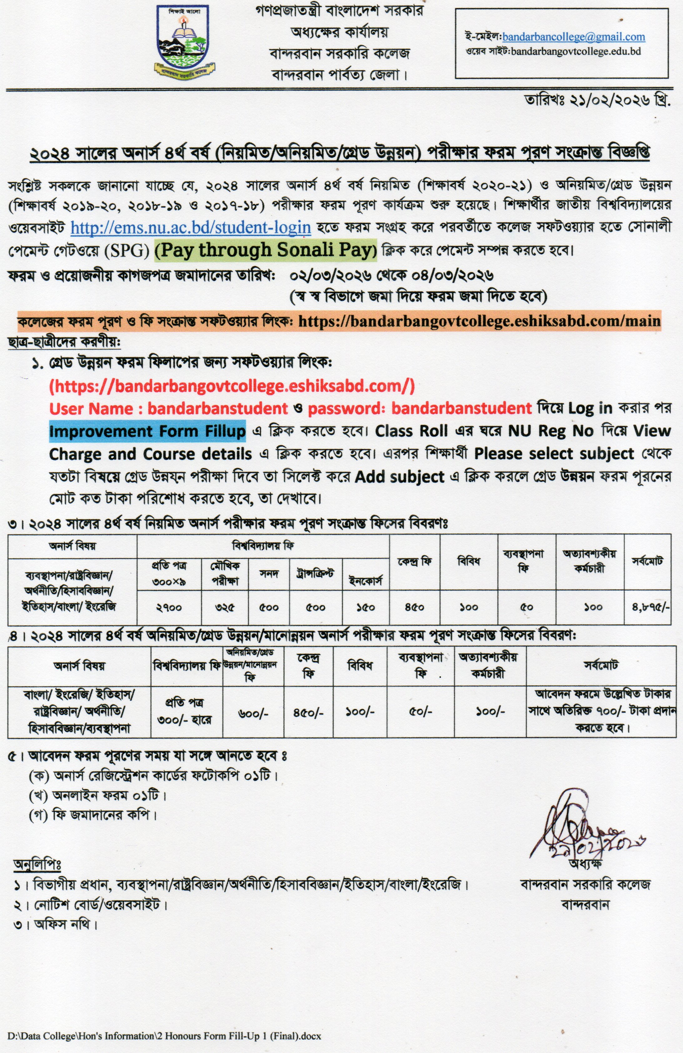 ২০২৪ সালের অনার্স ৪র্থ বর্ষ ফরম পূরণ বিজ্ঞপ্তি
