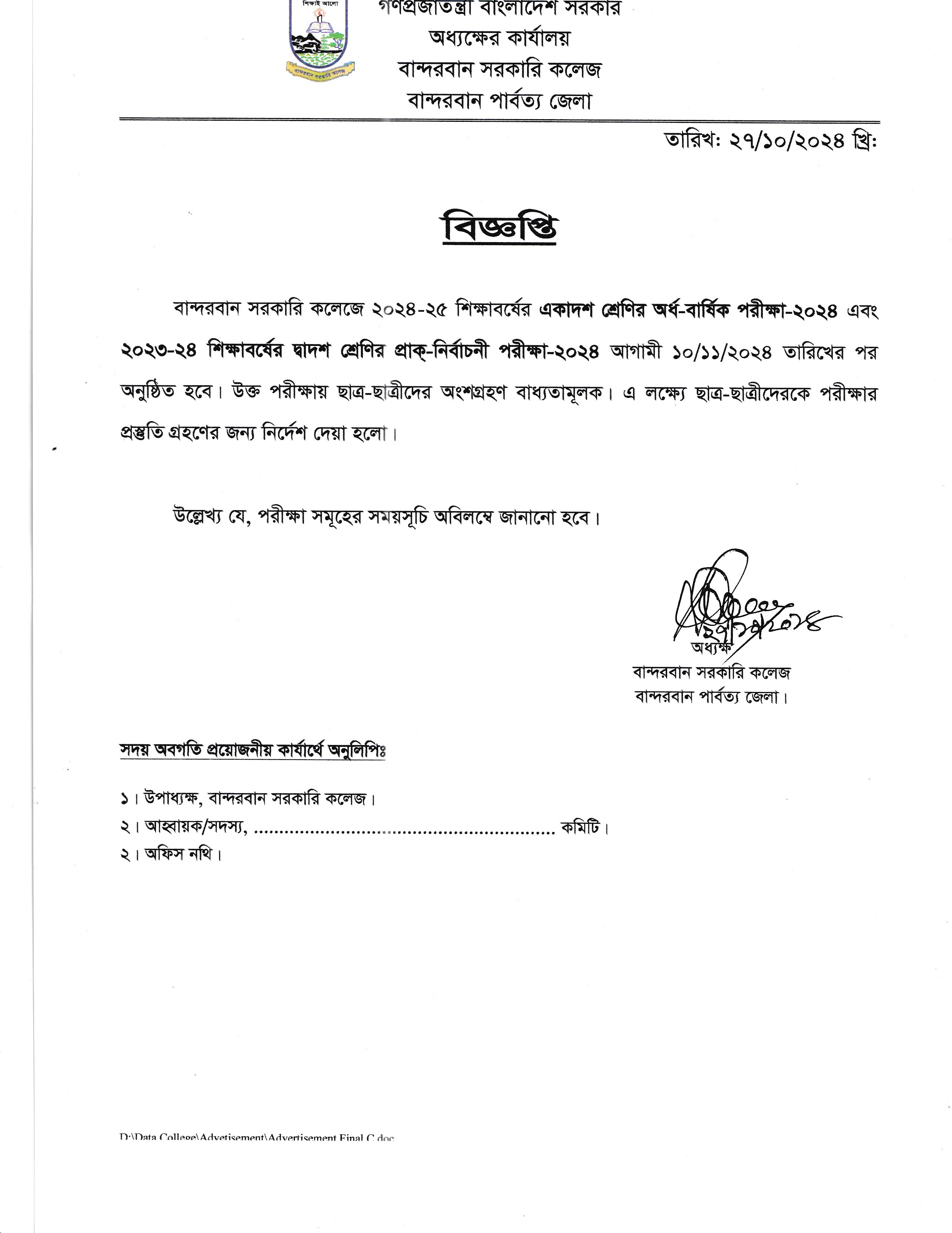 ২০২৪-২৫ শিক্ষাবর্ষের দ্বাদশ শ্রেণির প্রাক-নির্বাচনী পরীক্ষার ফলাফল সংক্রান্ত বিজ্ঞপ্তি