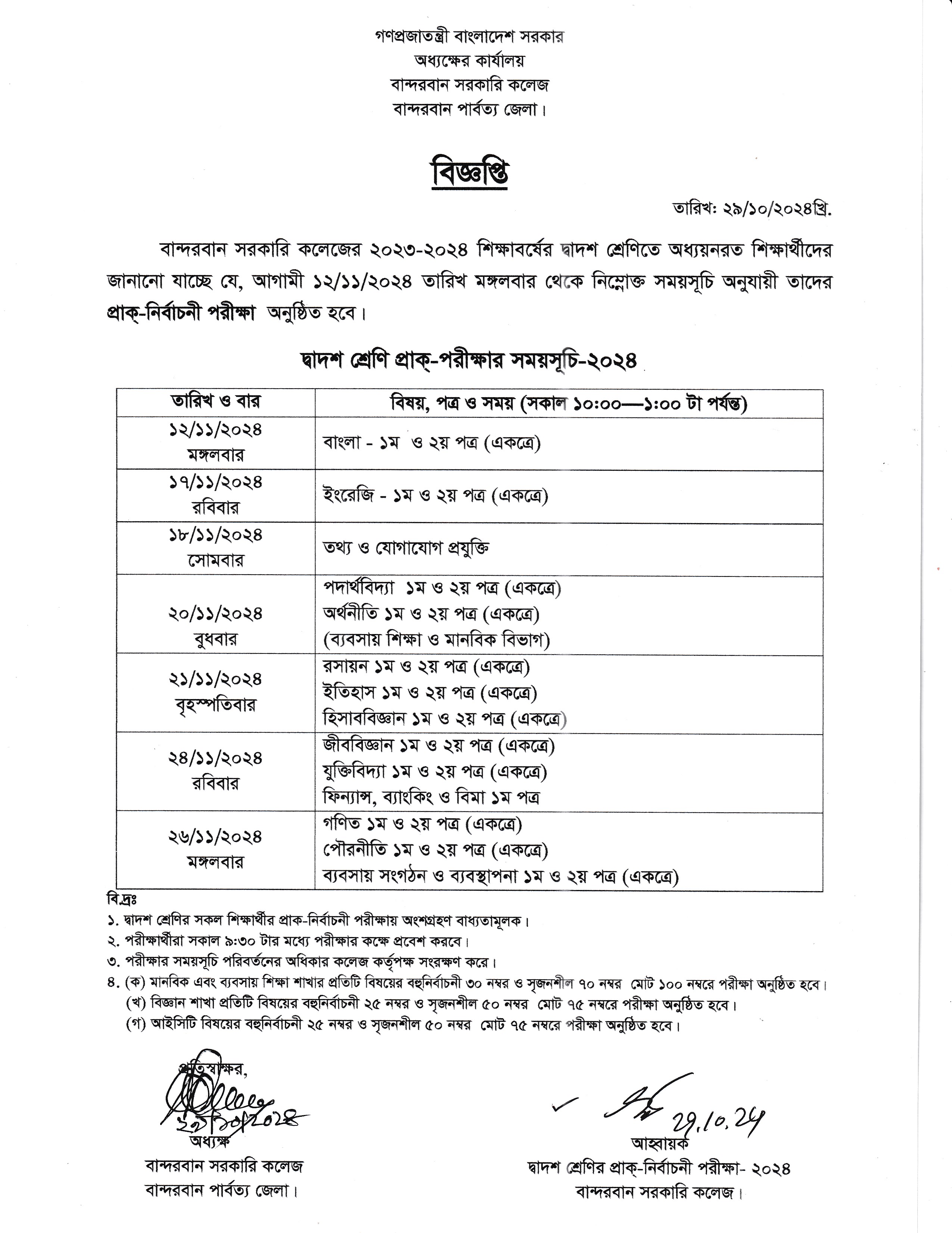 ২০২৩-২৪ শিক্ষাবর্ষের দ্বাদশ প্রাক নির্বাচনী রুটিন ২০২৪