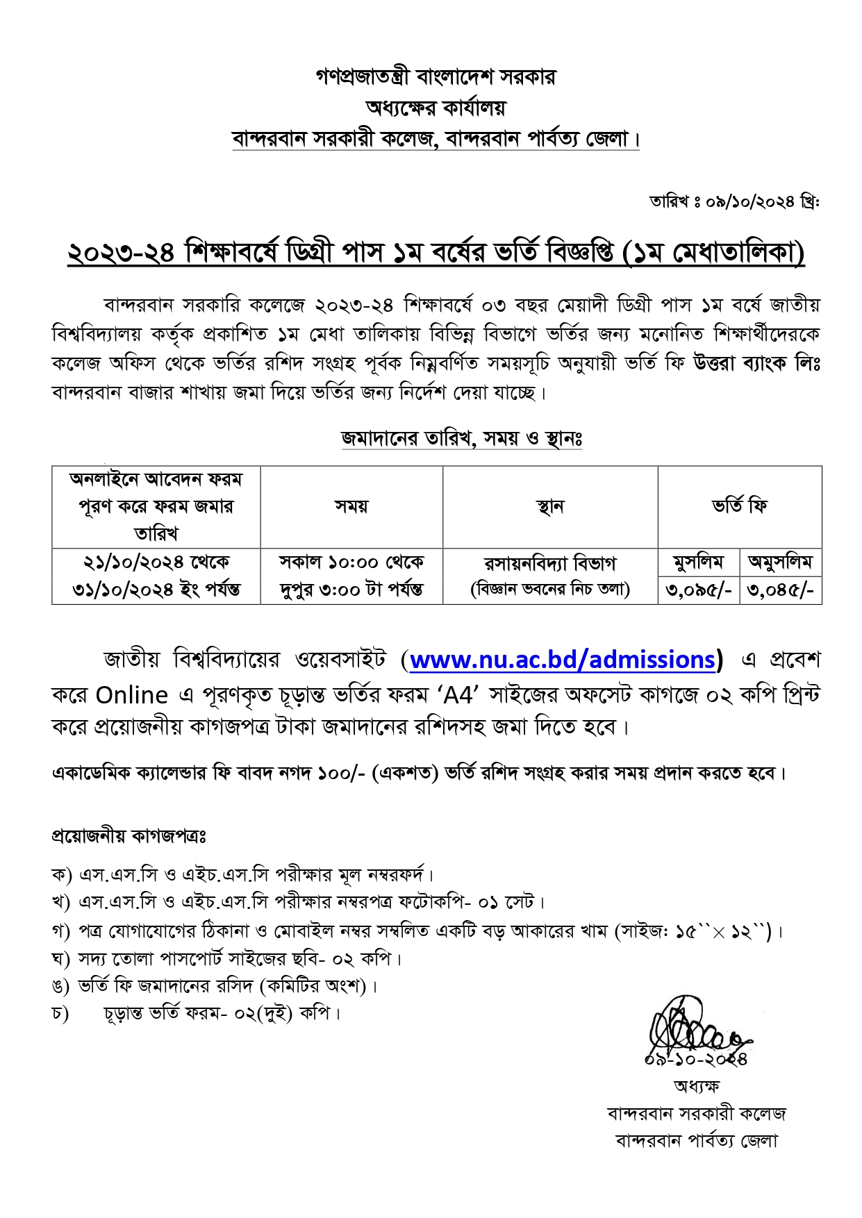 | ৭ | ডিগ্রী ভর্তির বিজ্ঞপ্তি 2023-24 | ২১/১০/২০২৪ | ![]() |