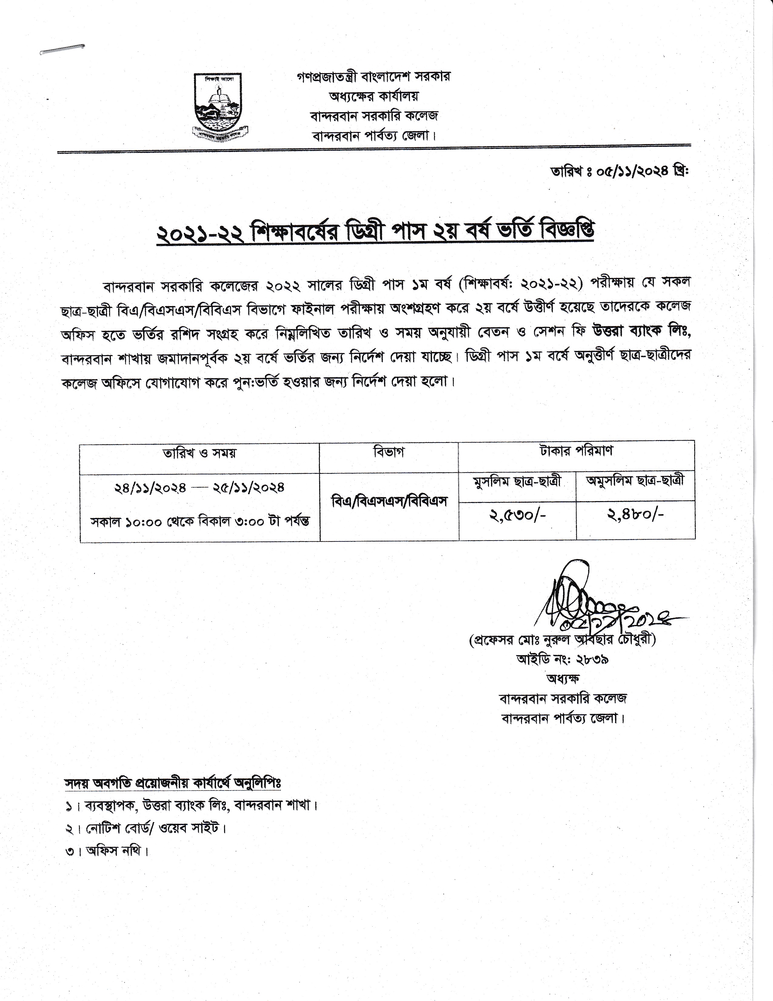 | ৬ | ডিগ্রী পাস ২য় বর্ষ ভর্তি বিজ্ঞপ্তি | ০৬/১১/২০২৪ | ![]() |