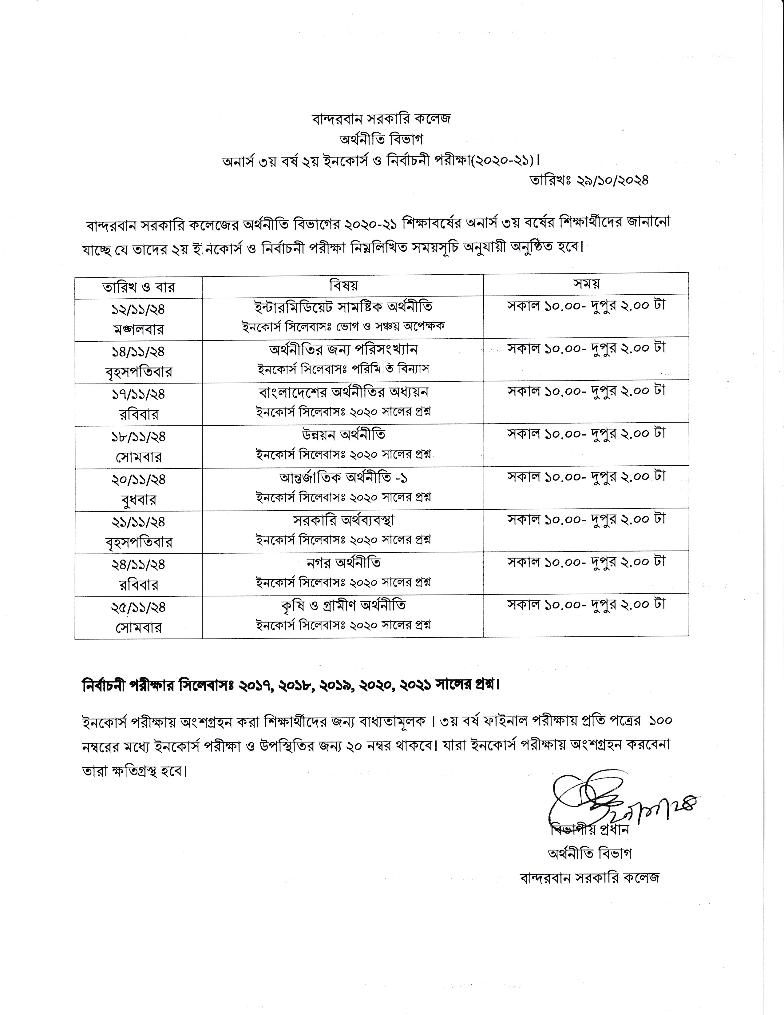 | ৫ | অর্থনীতি বিভাগের অনার্স ৩য় বর্ষের ২য় ইনকোর্স ও নির্বাচনী পরীক্ষার রুটিন | ২৯/১০/২০২৪ | ![]() |