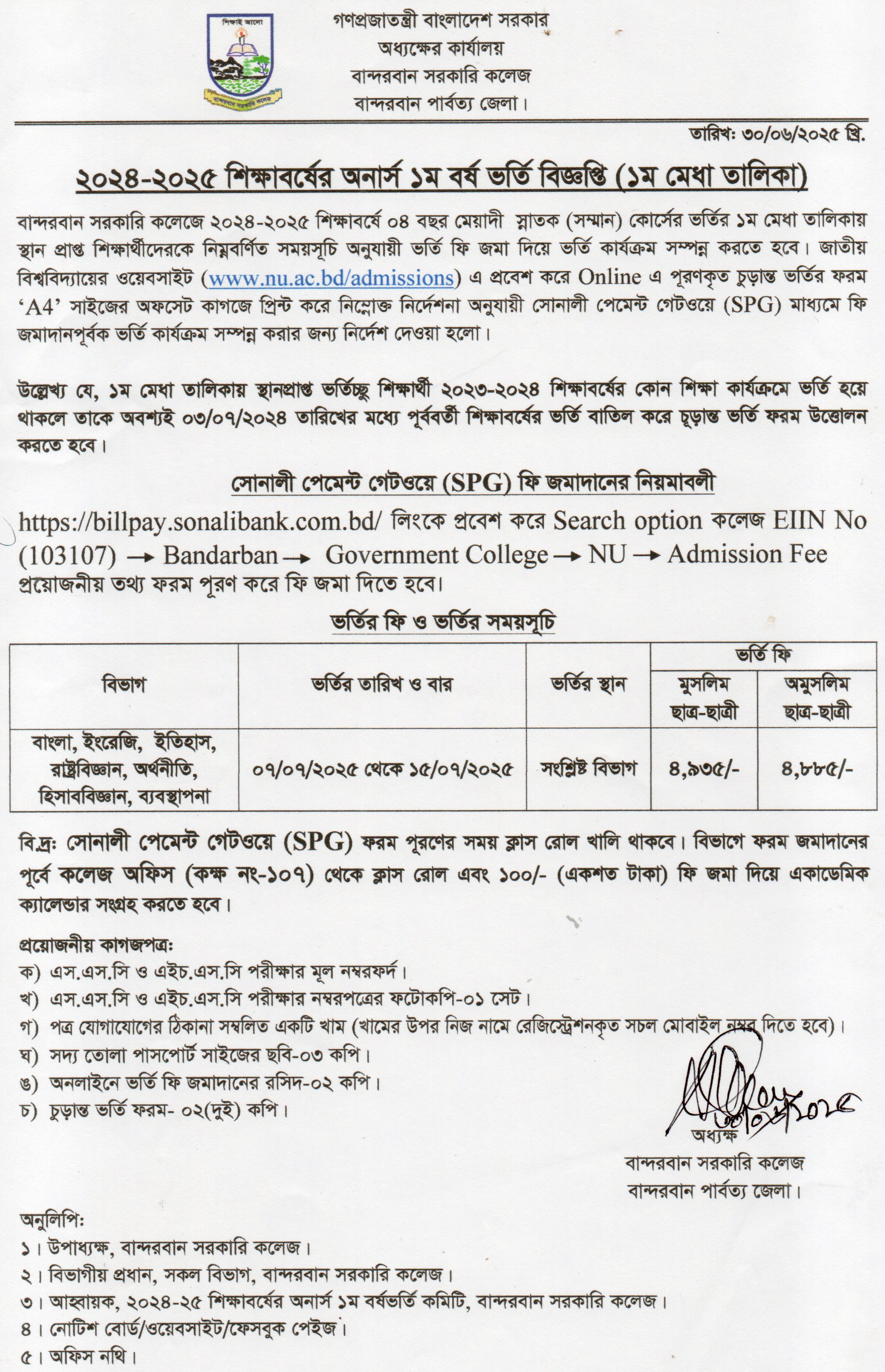 | ৪ | অনার্স ১ম বর্ষ ভর্তি বিজ্ঞপ্তি | ০১/০৭/২০২৫ | ![]() |