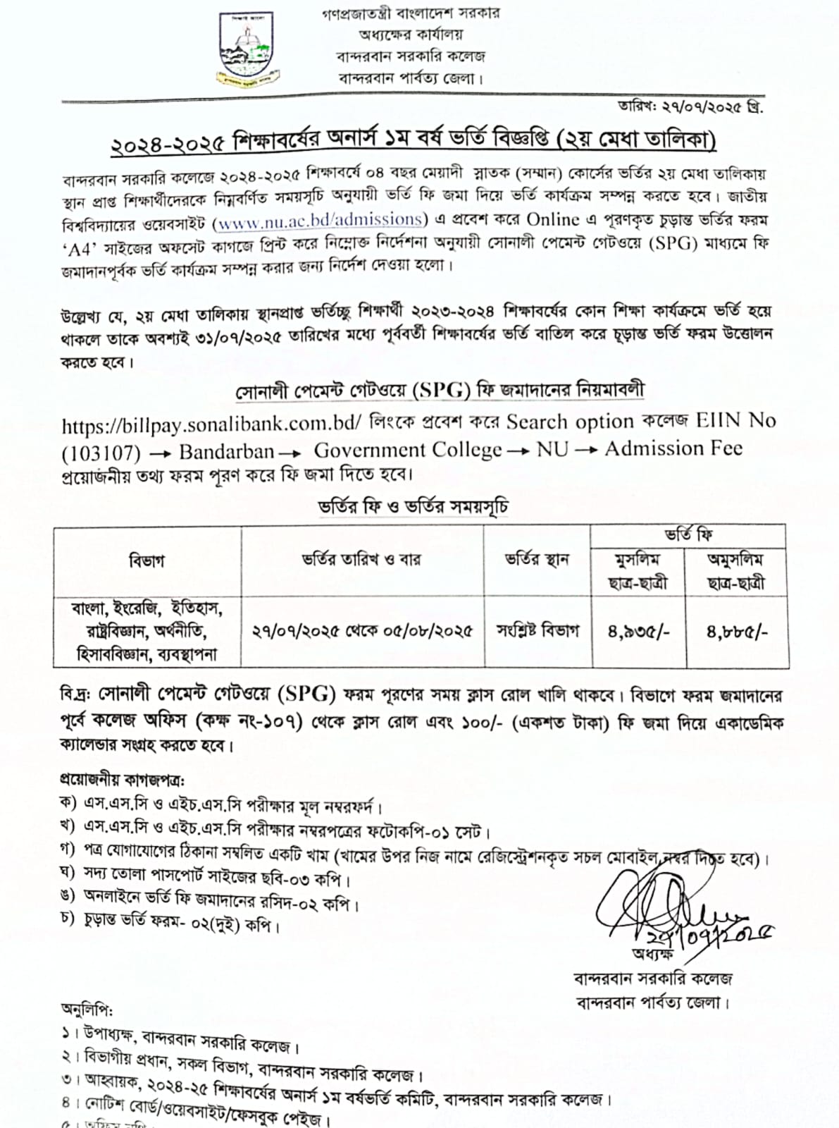 | ৩ | অনার্স ১ম বর্ষের ভর্তি বিজ্ঞপ্তি (২য় মেধা তালিকা) | ২৭/০৭/২০২৫ | ![]() |