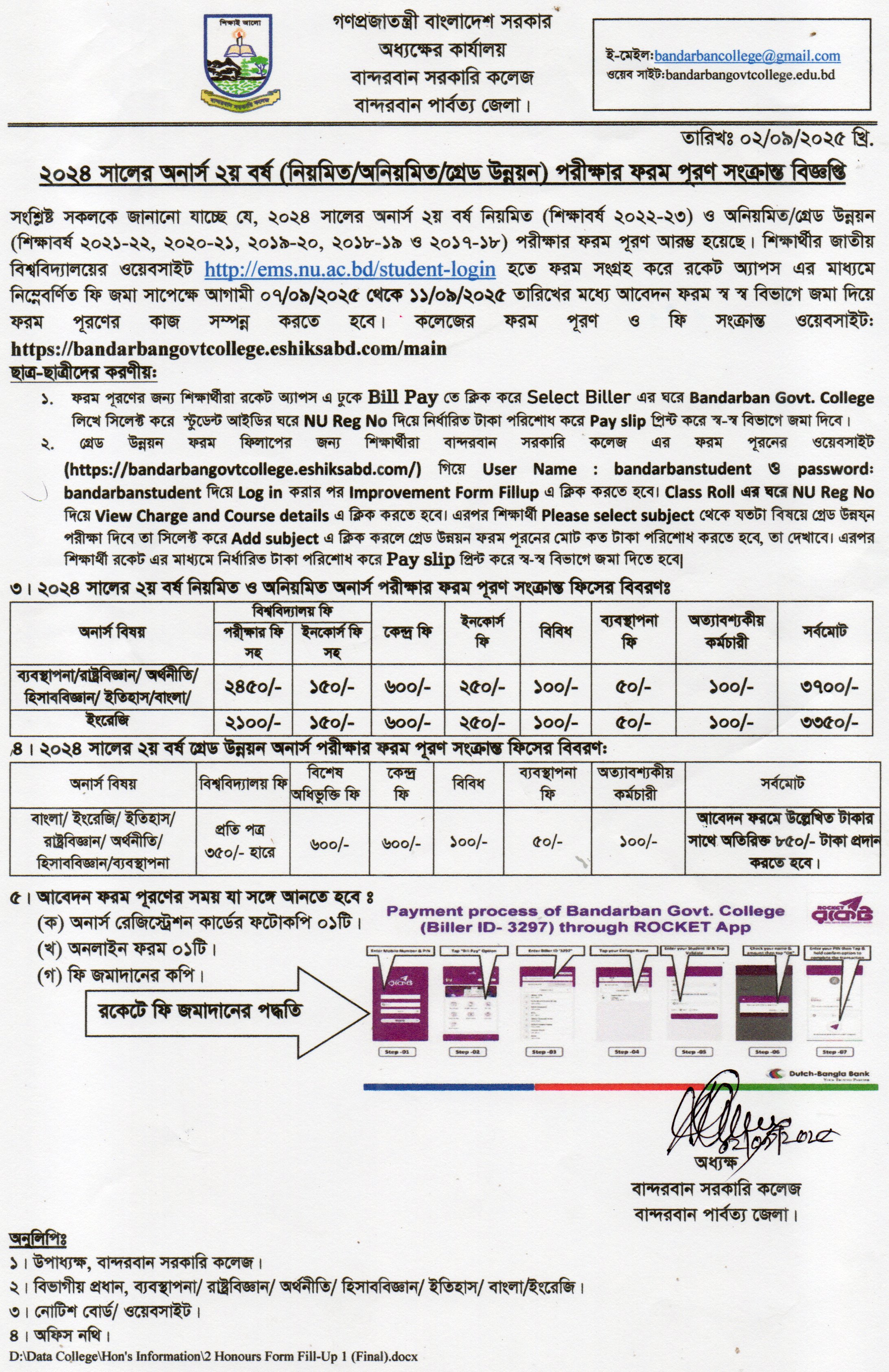 | ২ | ২০২৪ সালের অনার্স ২য় বর্ষ পরীক্ষার ফরম পূরণ বিজ্ঞপ্তি | ০২/০৯/২০২৫ | ![]() |
