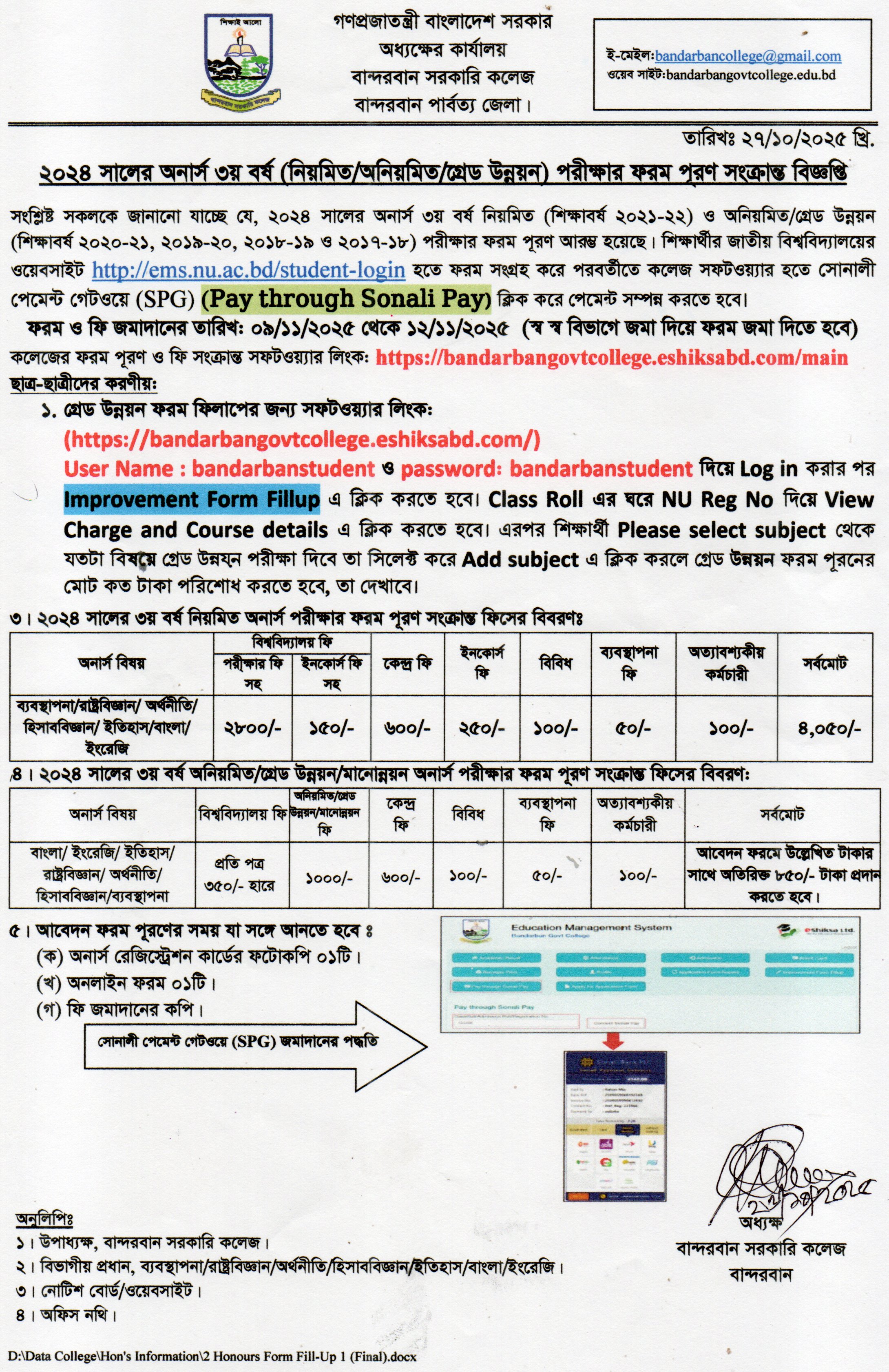 | ১ | ২০২৪ সালের অনার্স ৩য় বর্ষের ফরম পূরণ বিজ্ঞপ্তি | ২৭/১০/২০২৫ | ![]() |