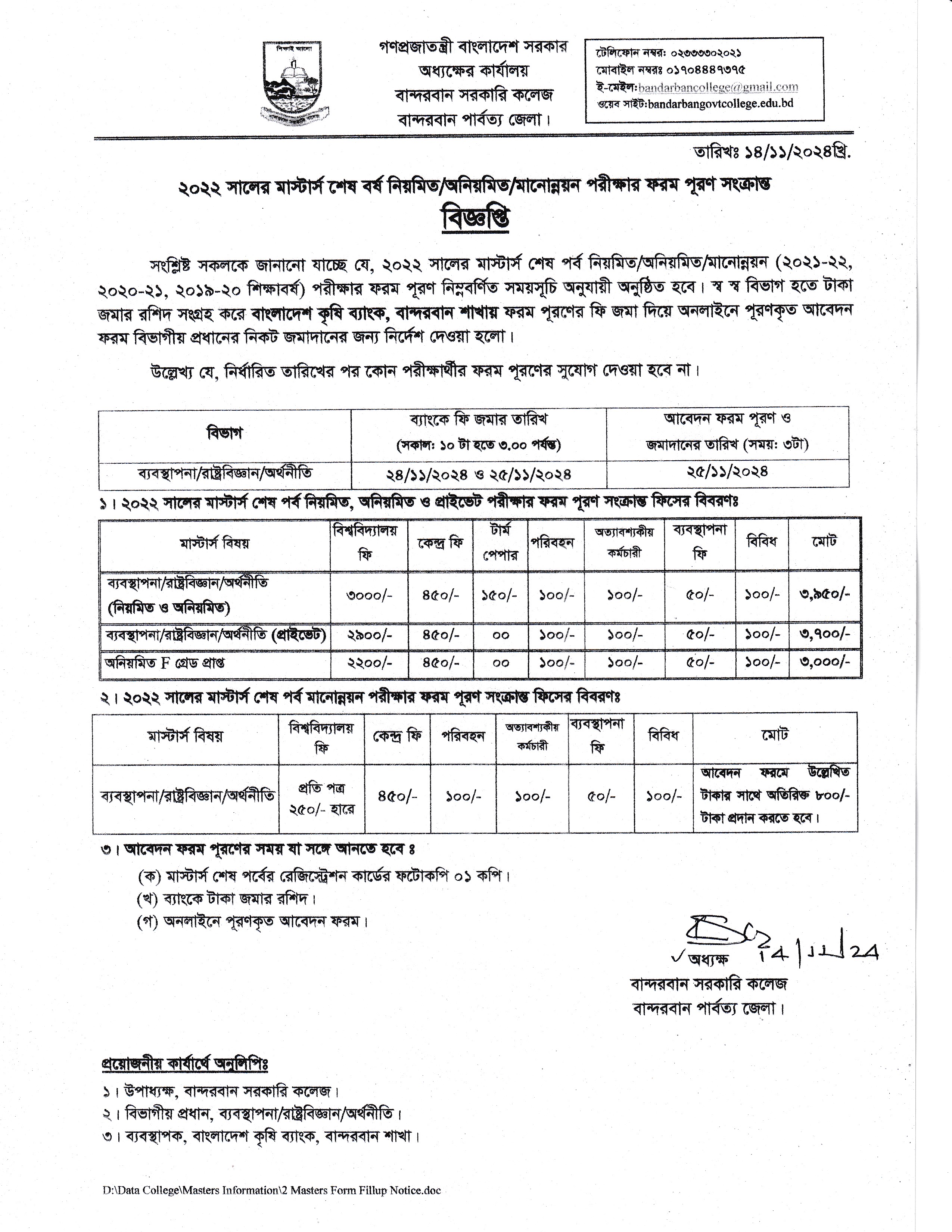 ২০২৩ সালের মাস্টার্স শেষ পর্ব পরীক্ষার ফরম পূরণ বিজ্ঞপ্তি